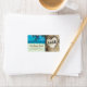 Étiquettes de adresse tropicaux exotiques avec un cadre de plage d'été, des lumières à corde et un palmier rustique avec un coeur sculpté avec vos initiales, nom de famille et adresse de retour.