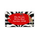 2"l x 3.75"w étiquette de adresse pour assortir notre invitation "Safari" avec une image de zèbre imprimé, une girafe, un singe avec une banane, un serpent vert, et un ovale rouge avec une adresse personnalisable. Voir l'invitation de carte correspondante, invitation de puzzle, enveloppe, confetti, sac de faveur, étiquette de faveur, autocollant carré de sauvegarde de la date et papier d'emballage. Voir l'ensemble de la collection Étiquette Safari dans les INVITATIONS | Section Stickers & Étiquettes.