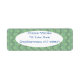 Ces étiquettes d'adresse de retour ont un design art déco de demi-cercles bleus et violets se connectent avec des lignes sur un champ de vert clair.