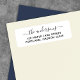 Script de calligraphie tendance Nom de famille Adresse de retour Étiquette facile à personnaliser. Maintenant, vous n'avez plus jamais à écrire votre adresse. Personnalisez-le en remplaçant le texte de l'espace réservé par votre nom et votre adresse. Pour plus d'options comme changer la police, il est taille, espacement entre les lettres ou l'interligne cliquez sur le bouton "Personnaliser". *Veuillez noter que le filigrane Zazzle qui apparaît dans l'aperçu du zoom n'apparaîtra PAS sur le produit imprimé final. © Bois de rose et agrumes