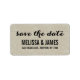 Rustic Linen Script Wedding Enregistrer le Étiquette de adresse Date. Design par Elke Clarke© pour MonogramGallery imprimé par Zazzle. Envoyez vos cartes de dates à vos amis et votre famille en utilisant ce étiquette simple et magnifique avec les mots "enregistrer la date" écrit dans une main blanche écriture typographie script texte superposition. Effet photo imprimé de lin beige arrière - plan. Autres couleurs disponibles.