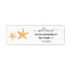 Une étiquette d'adresse de retour personnalisée à l'étoile orange moderne. Ce étiquette de adresse personnalisé dispose d'une police de script de calligraphie élégante et de deux étoiles de mer.