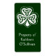 Ce étiquette dispose d'un shamrock de noeud celtique blanc sur un arrière - plan vert foncé et texte personnalisable. Utilisez comme étiquette de bibliothèque, étiquette de bagage, étiquette d'expédition, étiquette cadeau, fête et plus encore.