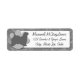 Magnifiques étiquettes de adresse Tibétains Terrier monochrome pour l'amoureux des chiens moderne. Une silhouette de race grise est empilée devant un empreinte de patte argenté, avec un arrière - plan grossier.