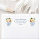 Un design classique d'étiquette d'adresse de retour avec un pot de gingembre aquarelle rempli de fleurs aux teintes d'automne (orange, rouille, pêche).