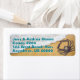 Étiquettes de l'adresse de retour de la maison de plage. Mer côtière et arrière - plan de sable avec conception d'araignée de crabe. Vous pouvez ajouter du texte en gras, en bleu, en trois ou quatre lignes au besoin.