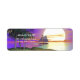 Retournez l'étiquette d'adresse avec mon illustration d'un voilier naviguant au-dessus d'une île et de palmiers avec un grand soleil couchant dans un ciel de nuages violets et jaunes.