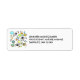 Étiquettes de adresse avec un motif mignon et coloré avec toutes sortes d'éléments thématiques de l'espace. Les images comprennent des astronautes flottant dans leurs combinaisons spatiales blanches. Étoiles, planètes et petits navires-roquettes cool, vaisseaux spatiaux et satellites. Design amusant et fou.