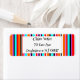 Ces étiquettes d'adresse de retour ont un design simple de bandes verticales de différentes épaisseurs en rouge, orange, violet, noir, bleu clair et blanc.