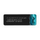 Le bord droit de cette élégante étiquette d'adresse de retour de faire-part de mariage moderne comporte une bordure turquoise d'aquarelle bleue ornée d'une parties scintillant en faux argent. Le texte personnalisable combine des polices de serif romaine gris argenté et des polices de cuivre sur un arrière - plan non noir.