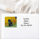 Retourner les étiquettes d'adresse avec un chat noir dans le style de Van Gogh! Ce chaton noir est assis par une chaise sur un sol vert contre un arrière - plan de décoration Starry Night. Un cadeau fabuleux pour les amoureux de les chats et les collectionneurs d'art hollandais !
