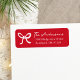 Ajoutez une touche de finition festive à votre courrier de vacances avec ces étiquettes d'adresse de retour rouge avec un arc blanc dessiné à la main et votre nom de famille dans un élégant script manuscrit. Personnalisé avec votre adresse de retour en dessous, ce design charmant se marie parfaitement avec les cartes de Noël, les invitations de fêtes, les baby showers d'hiver et la correspondance saisonnière.