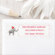 Le design présente l'image d'un éléphant blanc portant un chapeau de Père Noël et debout à côté de l'adresse de retour, qui est en lettres rouges. L'Arrière - plan présente des taches rouges et vertes. Conçu pour coordonner avec la "Collection Thème de Noël des éléphants blancs".