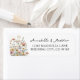 Add a soft, elegant finishing touch to your wedding stationery with this refined return address label. The design features a clean white background for a minimalist and sophisticated look, accented with delicate wildflowers along the left side. Muted pink, yellow, lavender, and blue blooms with gentle green leaves provide a subtle garden-inspired touch without overwhelming the design.