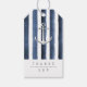 Aquarelle rayures en bleu marine foncé avec design d'ancre argent, simple et chic, étiquettes cadeau grand mariage pour mariage de plage, mariage à thème nautique, mariage de destination, et mariage d'été. Voir toutes les pièces correspondantes dans la collection ci-dessous.