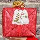 Cette marque cadeau recto-verso est ornée d'un ruban d'art abstrait coloré rouge, vert et or, surmonté d'une fausse étoile parties scintillant en or sur le devant. Il y a une typographie rouge et verte "Joyeux Noël" sur le dos et la pièce pour les noms écrits. Personnalisez le nom à l'arrière dans les champs de texte, supprimez le nom ou modifiez à l'aide de l'outil de conception pour sélectionner un style de police, une taille et une couleur que vous souhaitez.