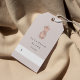 Les étiquettes à accrocher chic pour votre boutique ou votre commerce de détail présentent un faux ananas en feuille d'or rose sur un arrière - plan pâle cameo blush, avec deux lignes de texte personnalisé en dessous en gris. Espace blanc prévu pour écrire dans vos prix. Réglez le symbole monétaire au besoin à l'aide du modèle. Les blocs sont en blanc solide pour le texte personnalisé ou le message manuscrit supplémentaire. Coordonné avec notre suite de bureau Pineapple dans quatre couleurs élégantes.