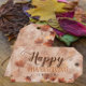 Cette étiquette cadeau Thanksgiving personnalisée capture la chaleur douillette de l'automne. Il est composé d'un arrière - plan rustique aux tons sépia qui rappelle un feu crépitant, avec des feuilles d'érable et de chêne en chute dans de riches bruns et des oranges brûlées créant une tapisserie naturelle à la récolte. La pièce maîtresse est "Bon thanksgiving" dans un élégant script manuscrit, et en dessous, votre nom de famille est entièrement personnalisable. Cette étiquette est la touche automnale parfaite pour tout cadeau de vacances réfléchi.