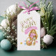 Ce modèle de marque-cadeau comporte un adorable lapin aux oreilles flop portant un panier d'oeufs de Pâques et souhaitant à tous un "Joyeux Partout de Pâques". Des pastels gais dans les tons rose, bleu et jaune et des accents de fleurs décoratives ajoutent cette touche finale à ce graphique fantaisiste de Pâques. Recherchez ID640 pour voir d'autres produits avec cette conception.