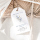 Étiquettes de remerciement de baby shower de mariage minimalistes avec un bouquet de fleurs aquarelle délicat avec des fleurs pastel douces bleues poussiéreuses et blanches.