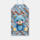 Blue and brown crocheted teddy bear baby shower to and from gift tags.