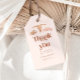 Étiquette de faveur de fête de mariage rustique et fantaisiste avec illustration dessinée à la main de chapeaux de cowboy et crâne d'animal.