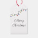 Balises cadeaux fêtes, avec lumières de Noël et design typographique. Avec des lettres personnalisables en noir, vous pouvez ajouter vos propres informations. Un joyeux ajout à vos faveurs et cadeaux de fête.