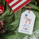 Balise cadeau de Noël en papier kraft imprimée avec un renne dessiné à la main, peint de petites fleurs et de feuilles en rouge, bleu et vert. Ajoutez votre nom dans un script bleu moderne. Le dos est assorti à un motif avec des fleurs rouges.