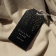 Les étiquettes à pendre chic pour votre entreprise sont des lettres blanches classiques sur un arrière - plan noir riche avec des fils verticaux de faux fils de feuille d'or en cascade du haut. Personnaliser avec deux lignes de texte personnalisé en dessous. Les blocs sont en blanc solide pour le texte personnalisé ou le message manuscrit supplémentaire.
