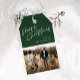 Green Modern Simple Script Photo Joyeux cadeau de Noël Tags comprennent un message de calligraphie moderne et votre photo de famille.