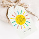 A Bright Sun Script Kids Happy Birthday Gift Tags avec arc-en-ciel soleil et script moderne merci sur le devant. Cliquez sur le bouton Modifier pour customiser cette conception avec vos détails.