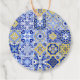 Design d'inspiration méditerranéenne avec des carreaux de style côte italienne d'Amalfi, bleus et jaunes vifs, avec des citrons peints à l'aquarelle et un cadre rond à paillettes dorées fausses.