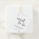 Tags de mariage chic et moderne avec un design minimal avec le message, "Mint To Be" dans une police d'écriture manuscrite et vos noms et la date ci-dessous, en noir, sur un arrière - plan blanc. Les polices et les couleurs arrière - plans peuvent être changées en n'importe quelle couleur. Ces étiquettes élégantes et élégantes sont parfaites pour le couple minimaliste et ajoutent une touche personnelle à vos préférences.