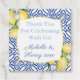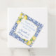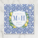 citrons d'aquarelle vibrants complétés par un motif vintage en azulejos avec du texte en bleu cobalt classique et bleu clair. Un côté contient un message et le nom du couple. Au verso se trouve une crête mariage avec initiales, noms et date de l'événement.