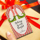 Jolies jambes de lutin portant des collants rayés rouge et ivoire et des bottes vertes avec des grelots et 'Baking Spirits Bright' en lettrage chic. Ces étiquettes-cadeaux sont parfaites pour vos cadeaux faits maison. ARTICLES assortis dans notre boutique.
