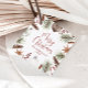 Des étiquettes de Noël rustiques neutres avec une bordure de Noël aquarelle avec des cônes de pin, des sucres de canne ornementaux et des baies de Noël.