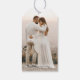 Faites plaisir à vos invités qui annoncent votre rendez-vous de mariage avec un cadeau, ils seront ravis d'entendre les nouvelles et de profiter du détail agréable! Balise cadeau photo avec des détails de calligraphie manuscrits modernes attrayants, ainsi que vos noms et date en noir texte photo superposition. Photographie à l'arrière avec zone pour message ou adresse du site Web. Conception en texte noir idéal pour les images en tons pâles, également disponible en texte blanc pour les images en tons foncés.