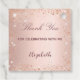 Un arrière - plan de gradient d'or faux rose avec fausse parties scintillant, moules. Personnalisez et ajoutez un nom, une date. Retour : ajoutez une note de remerciement, nom/signature.