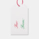 Papier : Matte Nous ne disons pas que la présentation de votre cadeau est aussi importante que le cadeau lui-même, mais personne ne veut un cadeau emballé dans un vieux journal. Ajoutez une touche d'élégance à vos paquets cadeaux avec des étiquettes-cadeau personnalisées. Créez les plus beaux emballages cadeaux en combinant nos étiquettes-cadeau avec notre papier cadeau et nos rubans personnalisés. Dimensions : 3,5 po x 2 po Vendu en série de 10 Imprimé sur 120 lb. Papier mat de luxe de 17,5 points d'épaisseur, un papier doux avec texture en coquille d'oeuf et une finition lisse trou pré-perforé Choix de 4 couleurs de ficelle non coupée Fabriqué aux États-Unis avec 30% de contenu post-consommateur