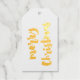Une étiquette simple et moderne à accrocher de Noël avec une feuille joyeux en lettres de Noël à l'avant et à l'arrière pour offrir un cadeau. Ajoutez un peu de flair à vos cadeaux de vacances et à vos produits de soutien. Disponible en feuille d'or et d'argent et avec un stock papier blanc ou Kraft.
