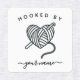 Enhance your clothing line with our editable personalized iron-on label template. Perfect for showcasing your knitting brand name and personalized message for handmade items with script font and crochet yarn graphic.