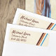 Customisez facilement ces étiquettes d'adresse de retour avec des bandes brunes, caramelles et bleues. Personnalisez, transférez et repositionnez les bandes. Ça fait du bien sur les étiquettes de colis et les enveloppes. Un grand ajout au jeu Caramel, Eggplant, & Blue Bar Mitzvah Invitation.