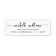 Étiquettes d'adresse de retour de script manuscrit élégant et moderne en noir et blanc. Caractéristiques d'un joli modèle de nom de script manuscrit avec une police à queue cursive. Facile à personnaliser avec votre nom et vos informations d'adresse de retour.