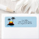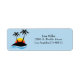 Étiquette de l'adresse de retour illustrée d'un dessin graphique de plage de palmiers sur une couleur arrière - plan bleue. Customisez ce point et changez le texte à votre place.