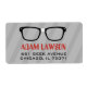 Lunettes noires Étiquettes de adresse Geek d'ordinateur. Avec des lunettes noires épaisses avec du ruban au centre les tenant ensemble ou les tenant sur le nez sur un arrière - plan rayé gris et une police informatique qui tient votre texte.