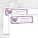 Étiquettes de adresse d'éléphants mauves, conçus exclusivement par Artistique Invité, avec un joli éléphant gris dans un cercle blanc avec votre nom et adresse personnalisés en violet et gris dans un rectangle blanc arrondi, sur une couleur arrière - plan violet. Le nom de la famille ou de l'individu est imprimé en violet au-dessus de l'adresse imprimée en gris. Ils sont parfaits pour les amateurs d'éléphants ou pour des occasions comme un baby shower à thème d'éléphant.