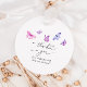 Étiquette de faveur de mariage sur le thème papillon capricieux et romantique avec illustration aquarelle de papillons roses et violets.