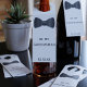 Demandez à vos amis d'être l'un de vos témoins avec une bouteille de vin. Comment pourraient-ils refuser ? Le design présente un simple nœud papillon noir avec un espace pour votre demande. J'ai laissé le verso intentionnellement noir pour que vous puissiez écrire un message personnel à la main.