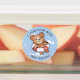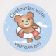 Adorable souriant en peluche en vacances. Autocollants imperméables en texte personnalisé pour les fêtes de piscine pour enfants et les clubs de vacances.