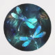 Deux libellules transparentes, lumineuses, turquoise, artistiquement dessinées sur l'arrière - plan de nuit avec des algues luminescentes et des lucioles. libellule éclatante.
